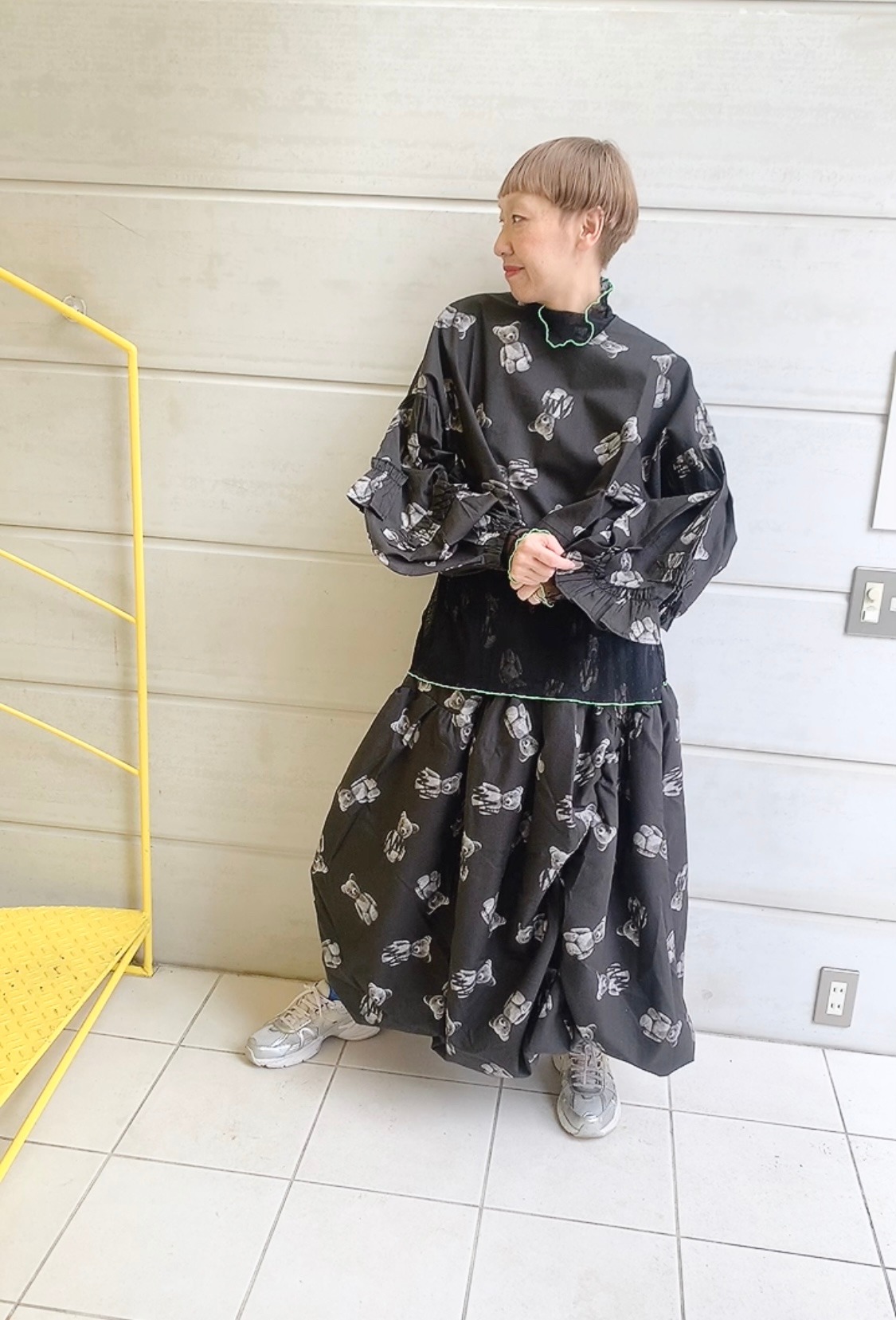 ↑🧸さんのshirtと、↓GATHER balloon shirt