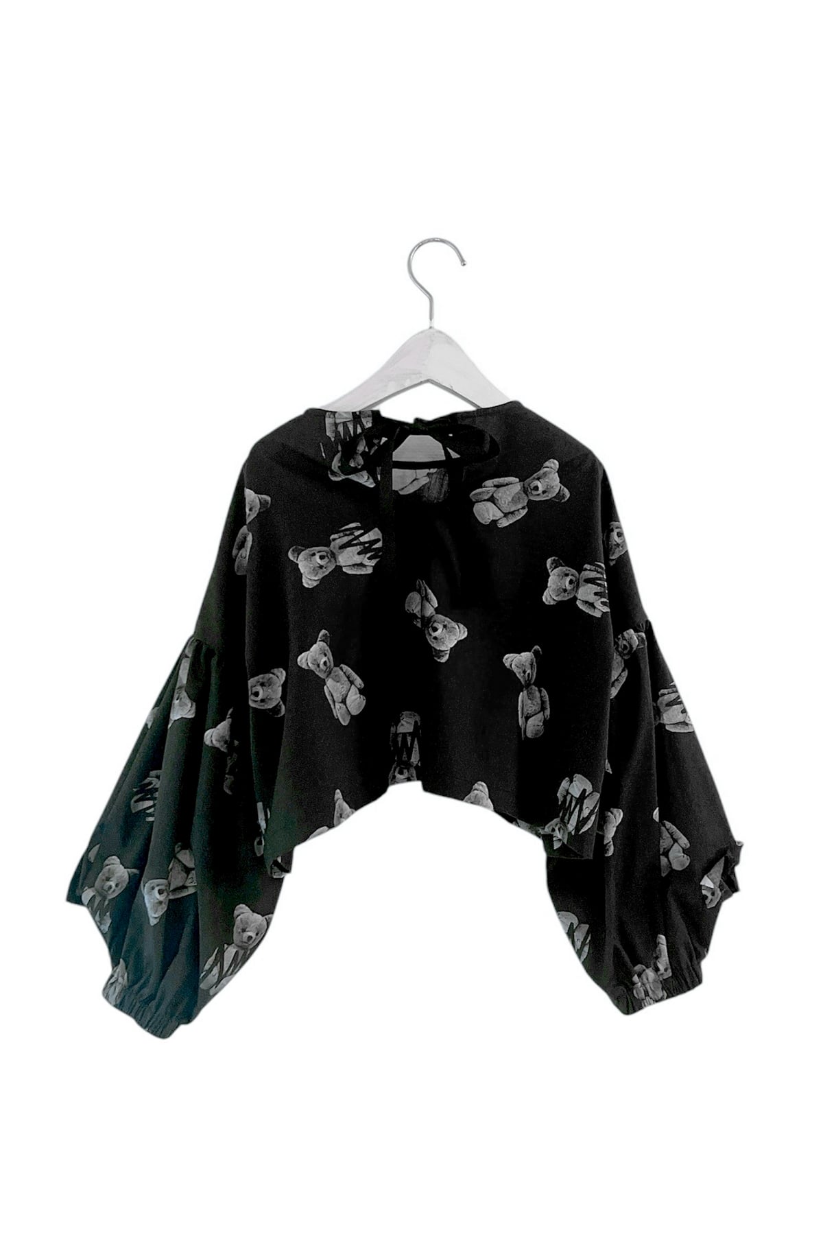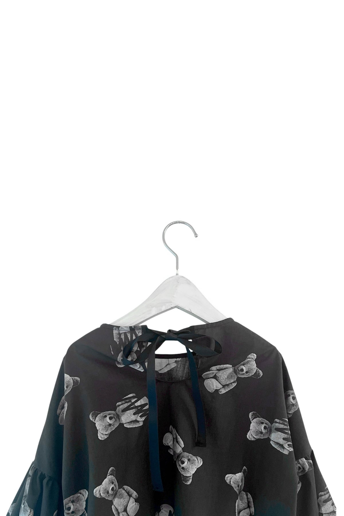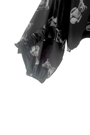 ボリューミーな両袖に、アシメントリーなフリルをデザイン。