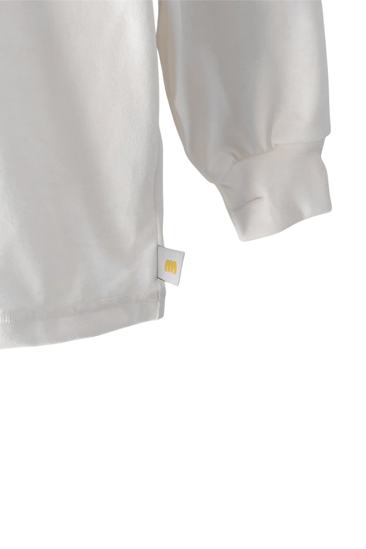 ネック部分の段差をつけたリブ、袖部分はレイヤード風になっており、