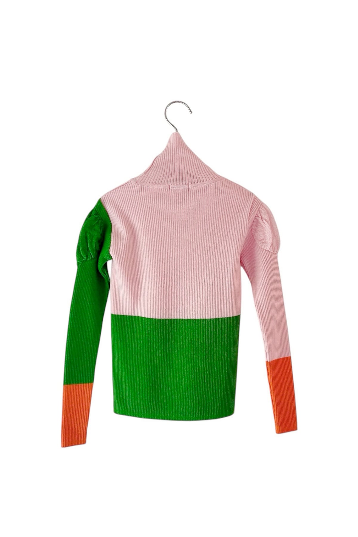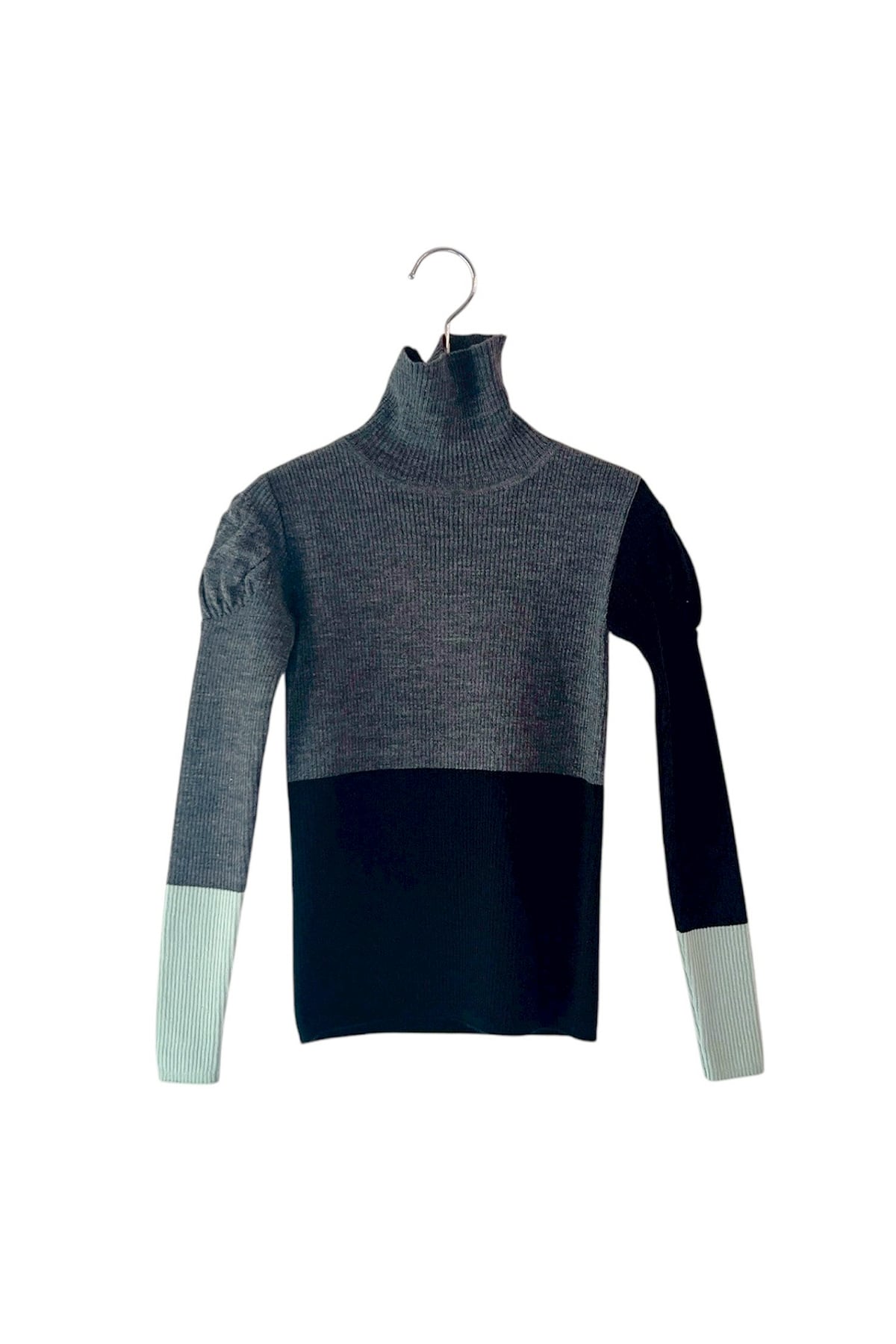MULTI COLOR SWELL SHOULDER HIGH-NECK KNIT