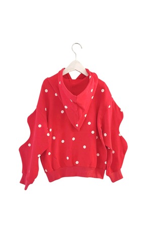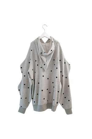 とんがったフードとなみなみな形の袖が印象的なフーディー。