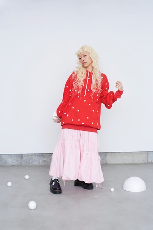 ○ model / Akane 153cm(col.RED-WHITE DOTS / size. F2 着用)