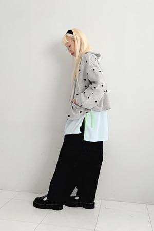 ○ model / Rei 109cm(col.GRAY-BLACK DOTS / size. L 着用)