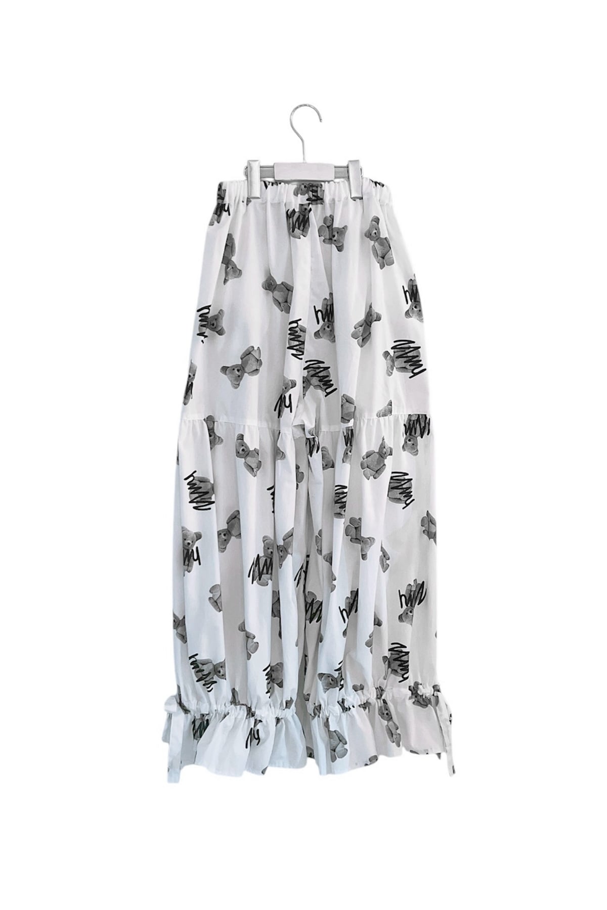 たっぷりギャザーが入りワイドシルエットなパンツ。