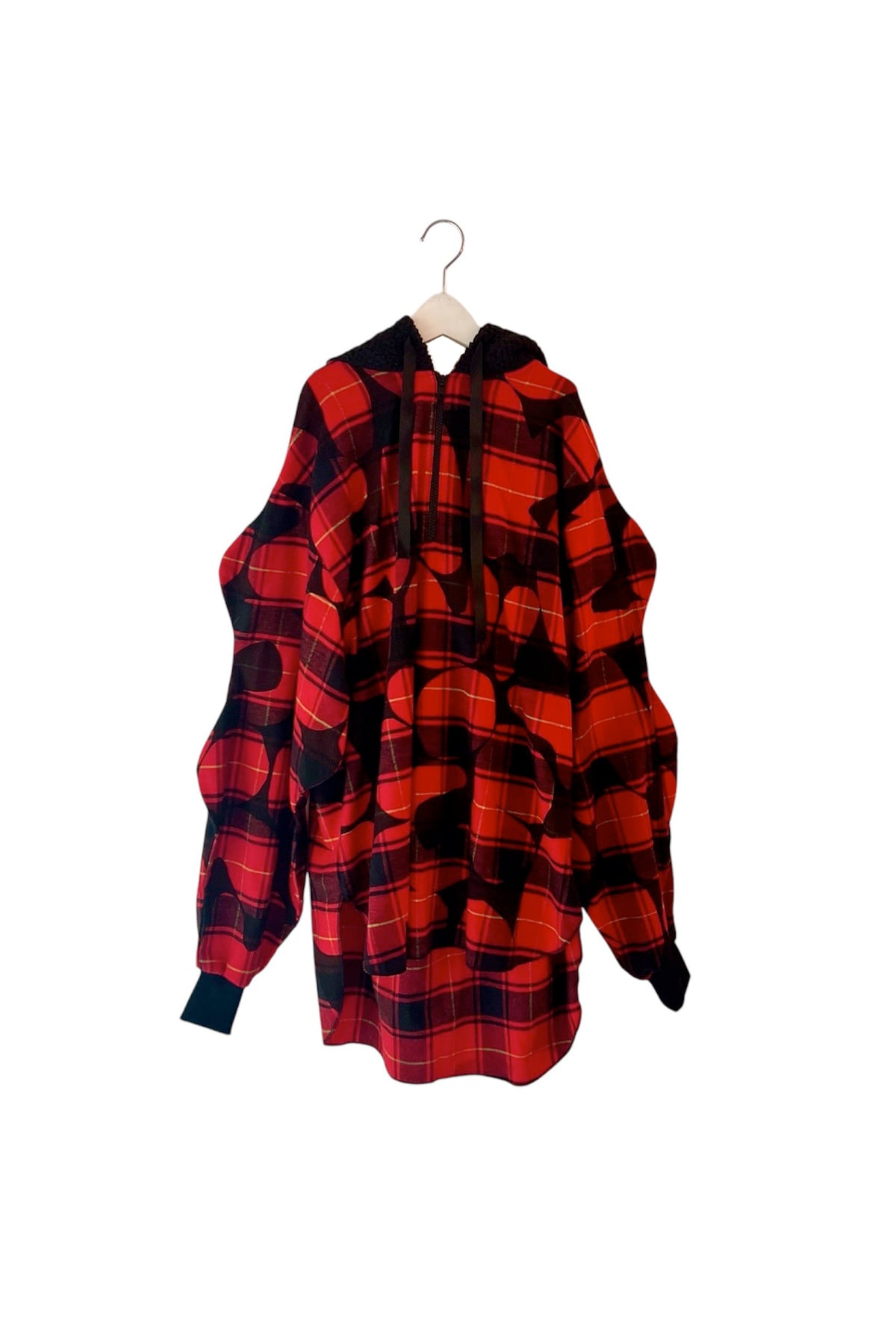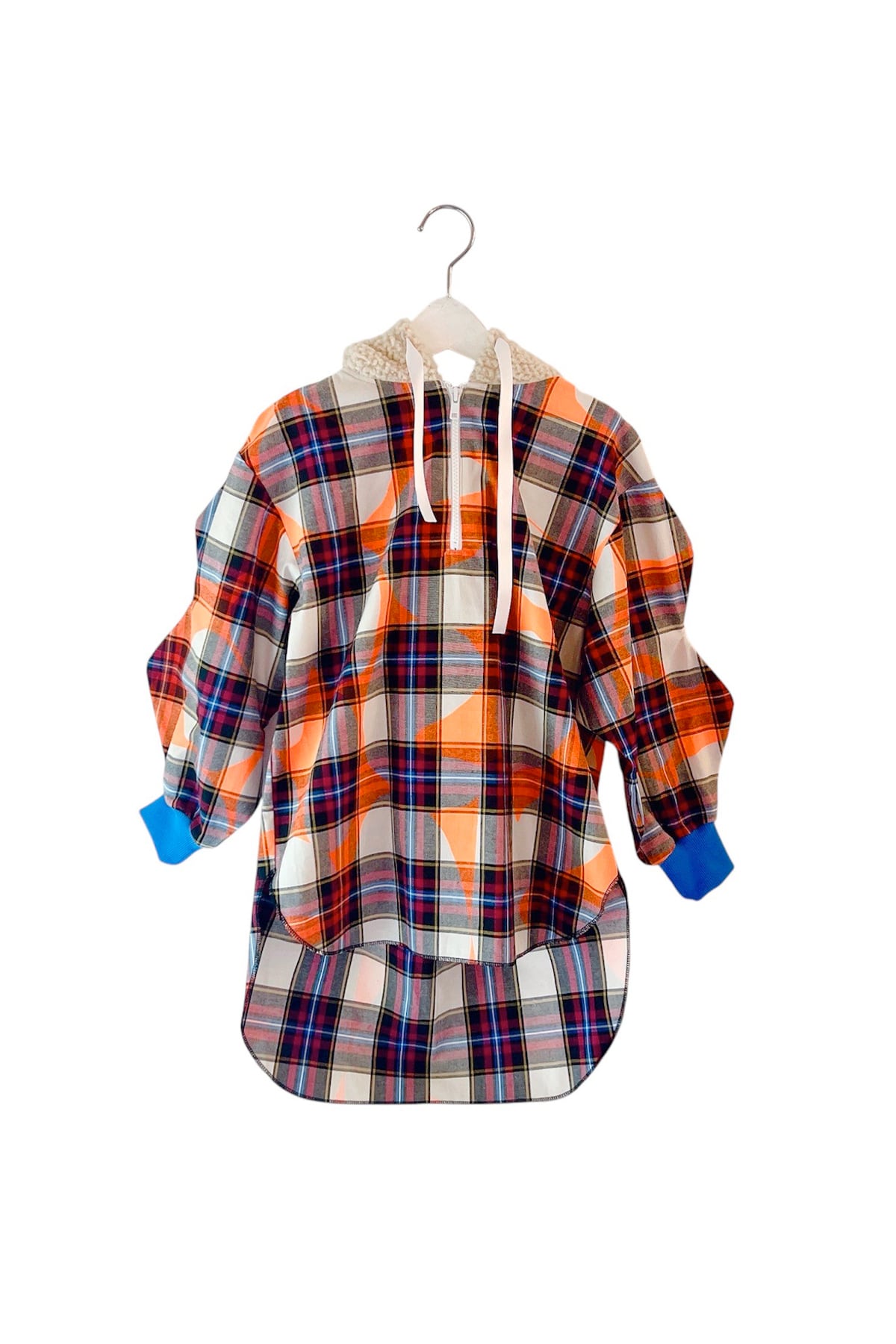 大きめなボアフードと前後の丈が違うアシンメトリーヘム