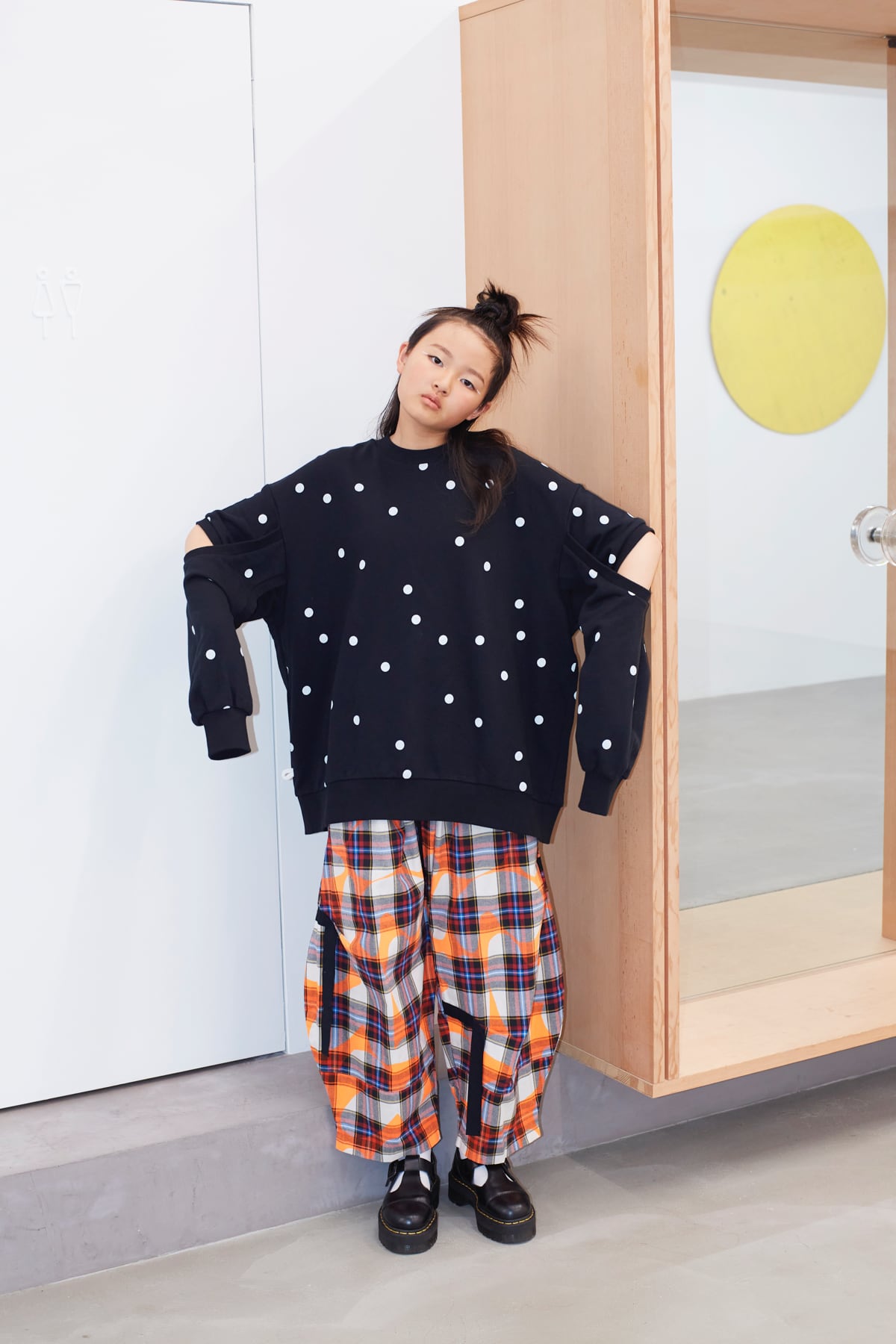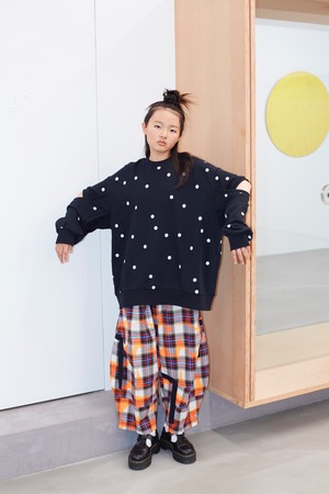 ○ model / Misaki 157cm(col.BLACK-WHITE DOTS / size. F2 着用)