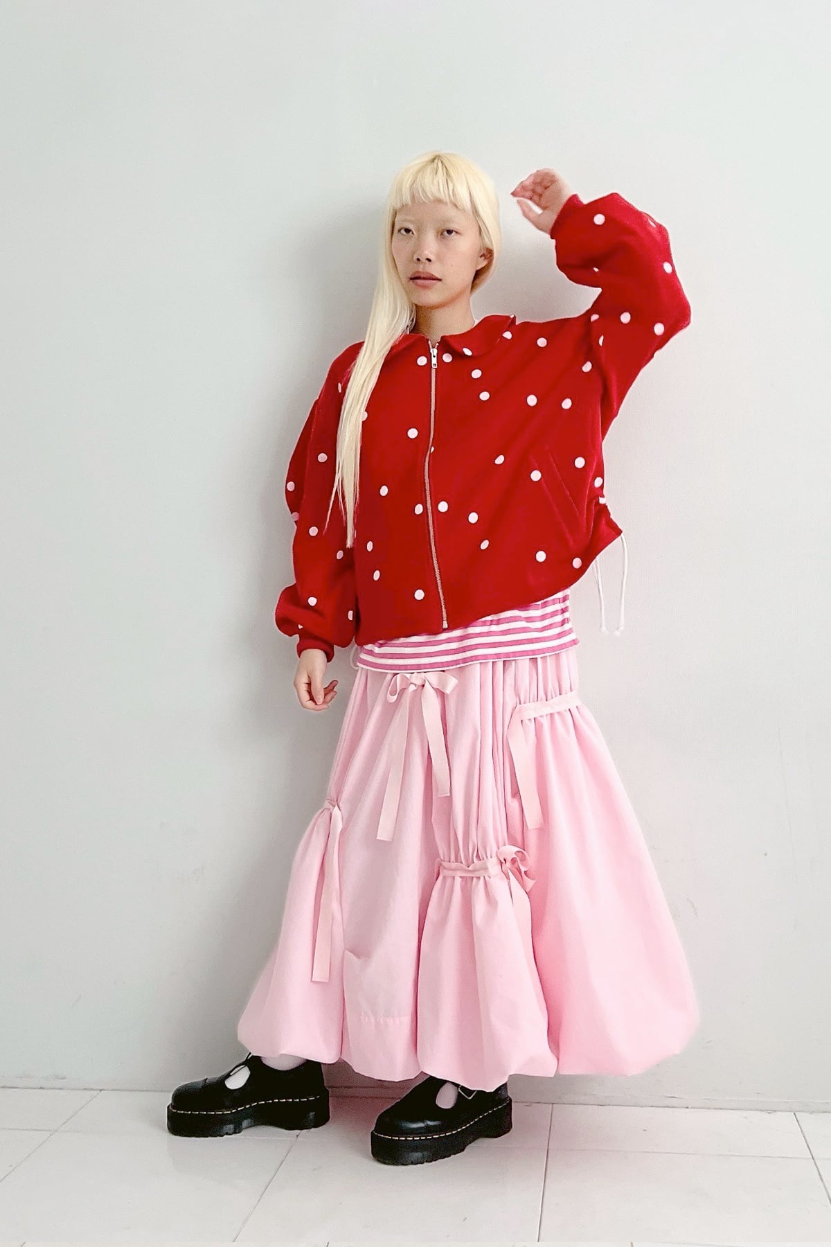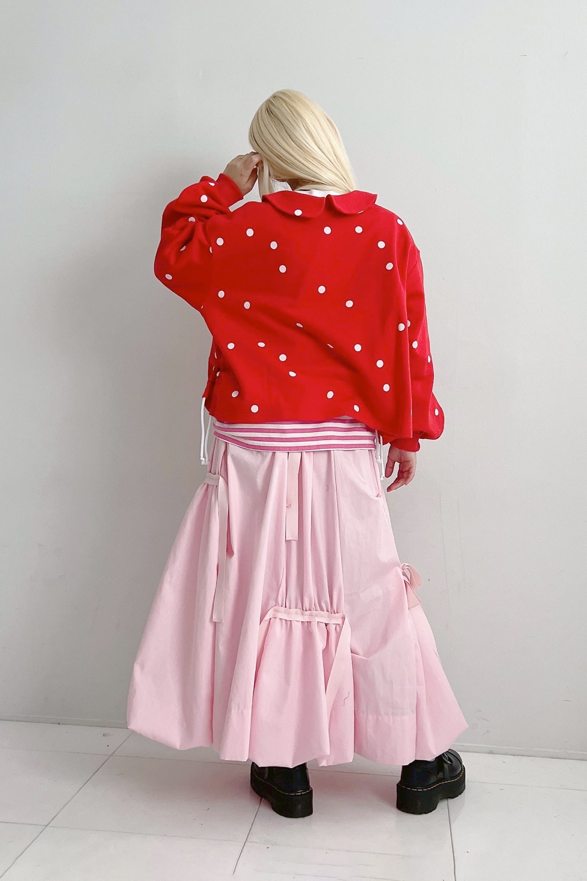 ○ model / Rida 132cm(col.RED-WHITE DOTS / size. L 着用)
