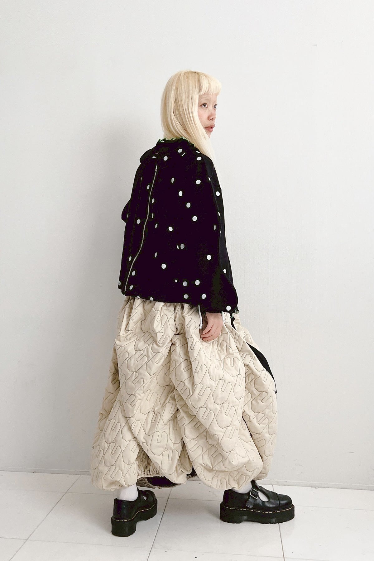 ○ model / Akane 153cm(col.BLACK-WHITE DOTS・RED-WHITE DOTS・GRAY-BLACK DOTS / size. F2 着用)