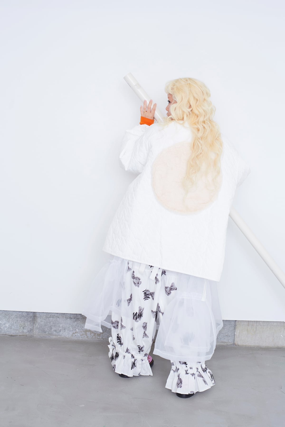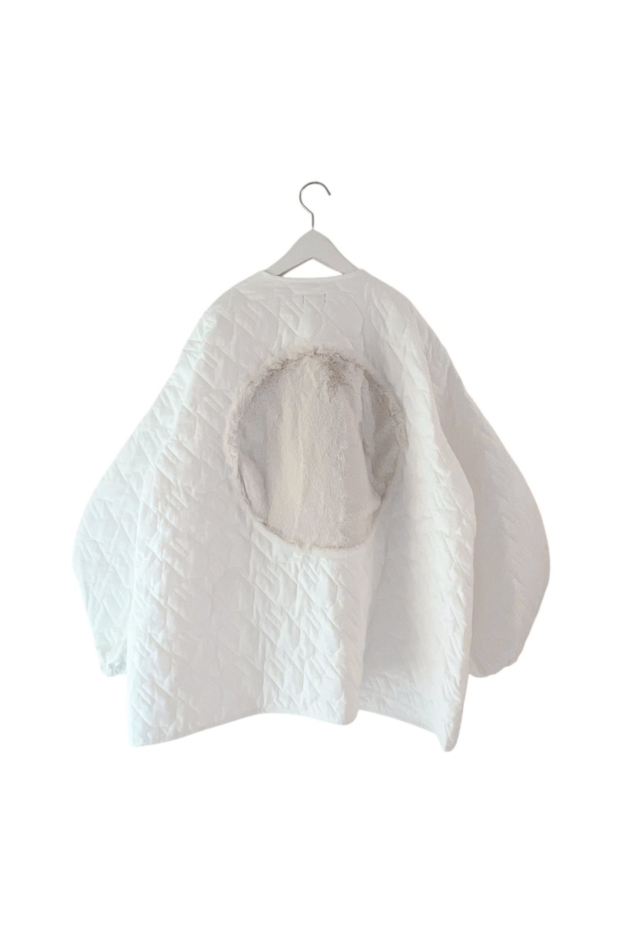 今季は、バックに配した丸型のフェイクファーが印象的なアイテム。