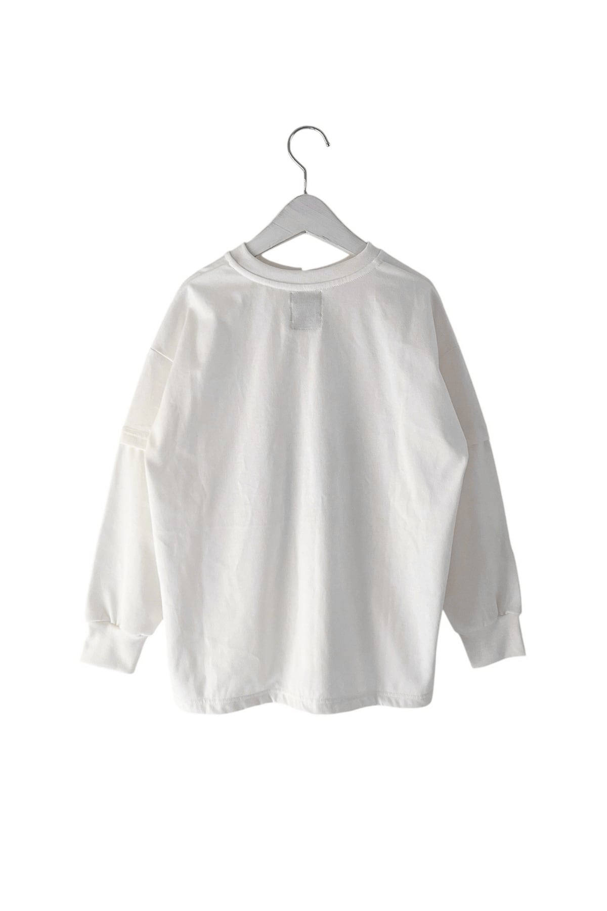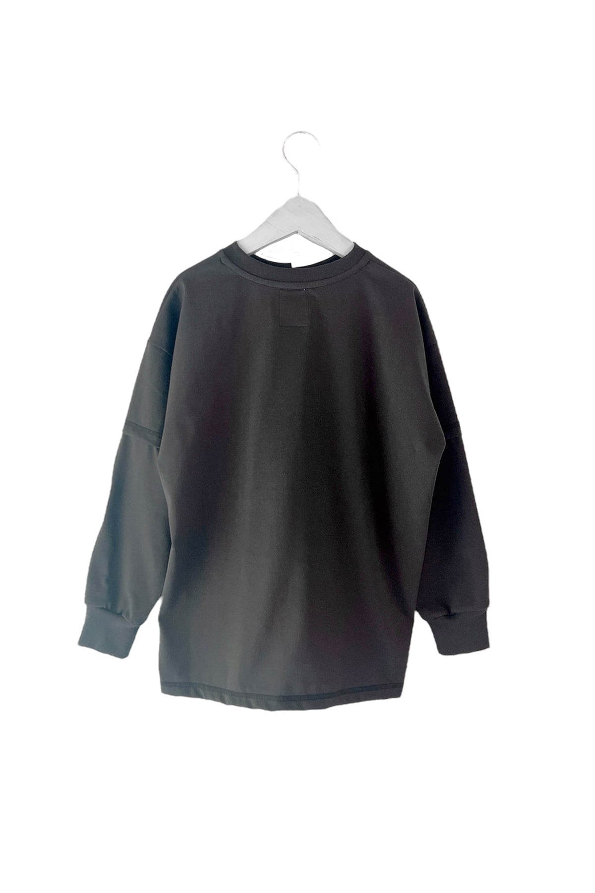 ネック部分の段差をつけたリブ、袖部分はレイヤード風になっており、