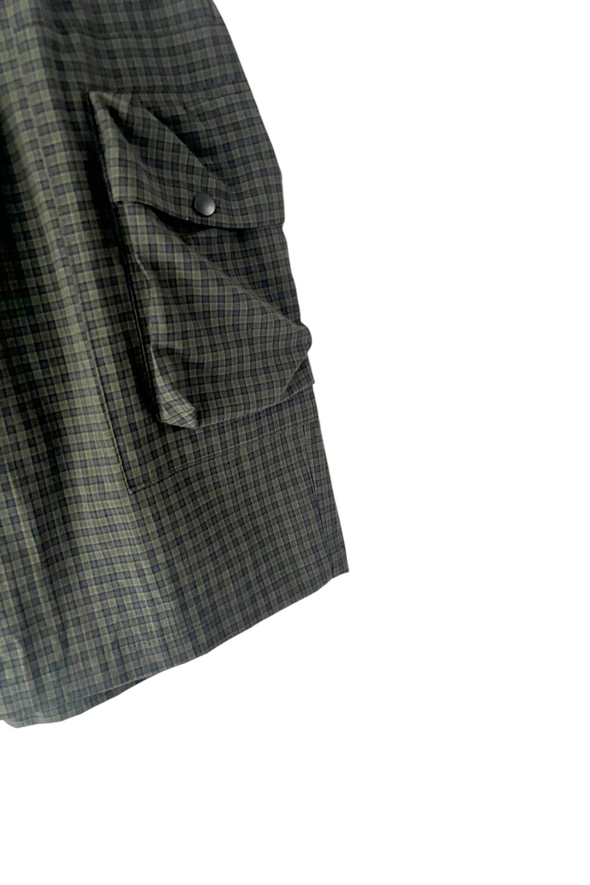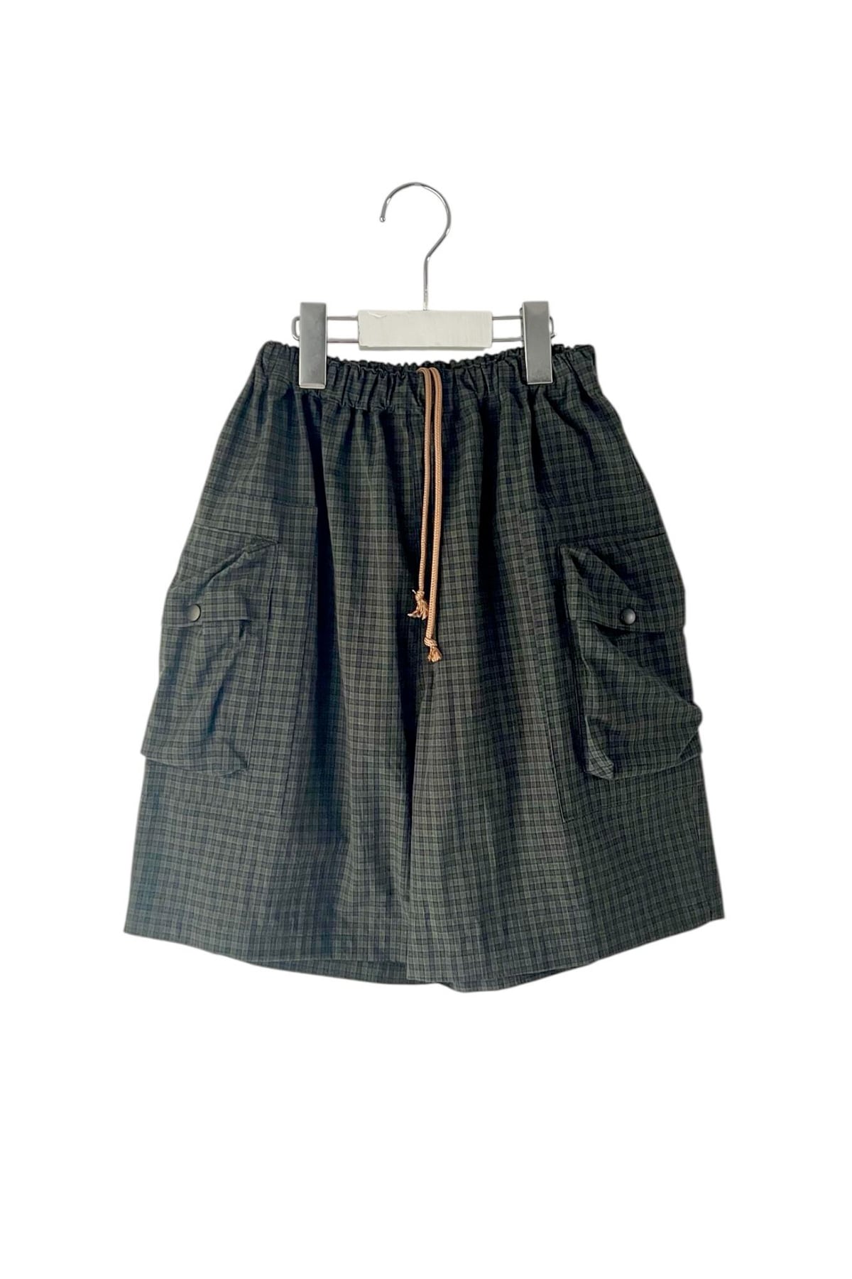 ミリタリーのディテールを取り入れたカーゴデザイン。オーガニックミニチェック生地を使用。厚すぎず薄すぎない丁度いい素材感。