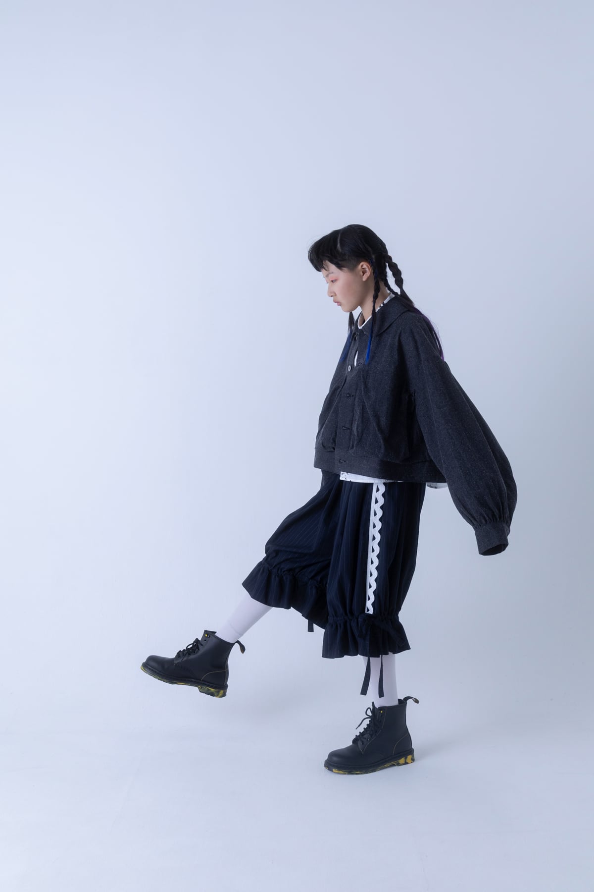 同素材のパンツとのセットアップもおすすめです。