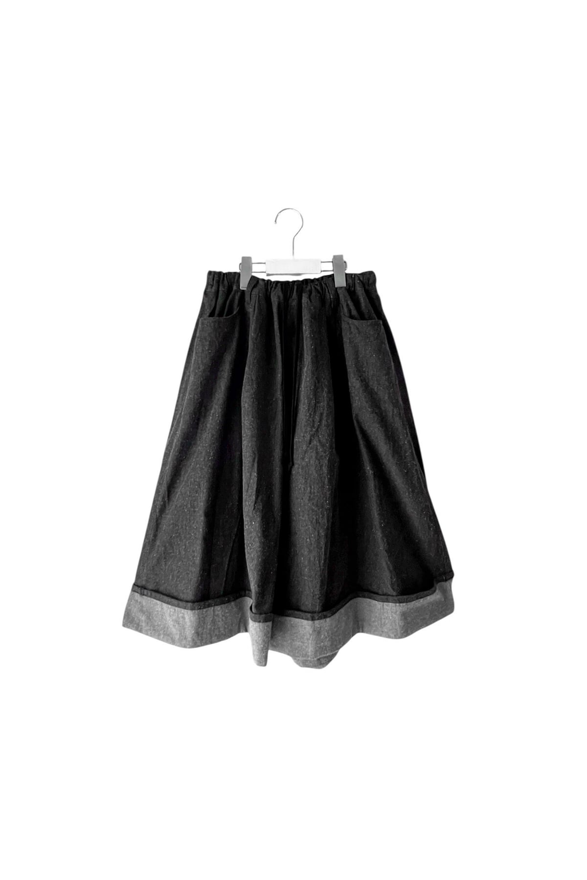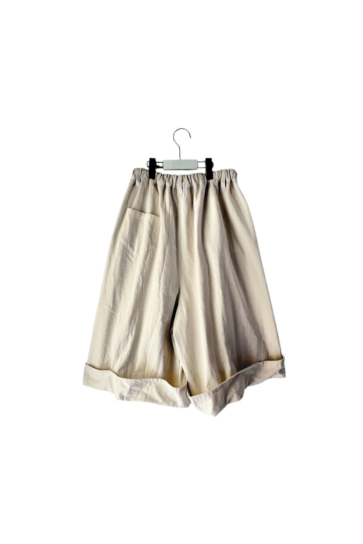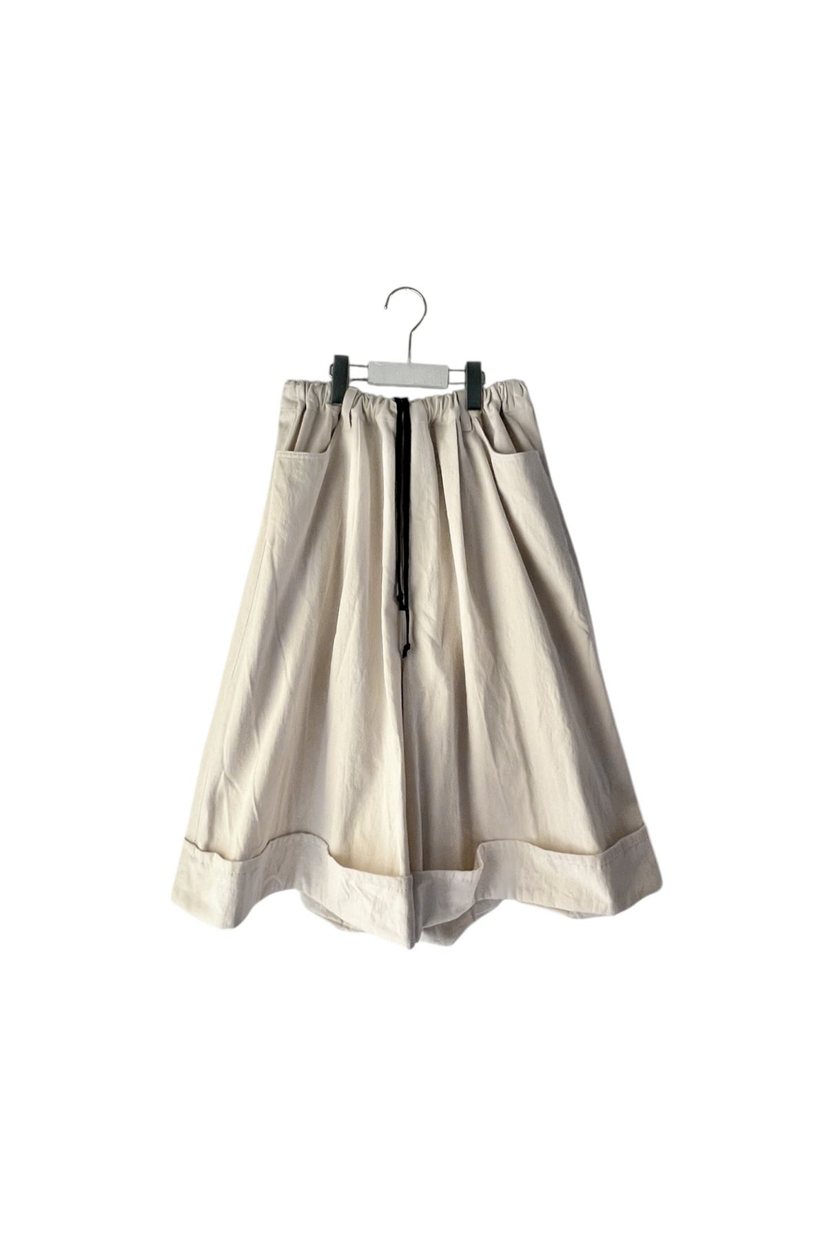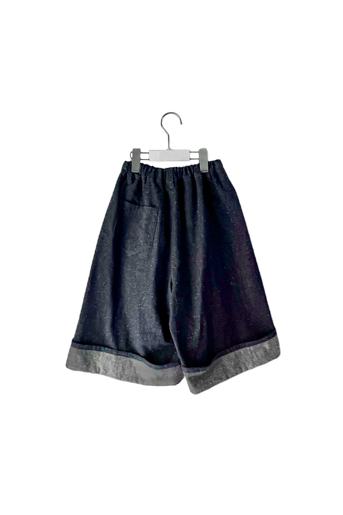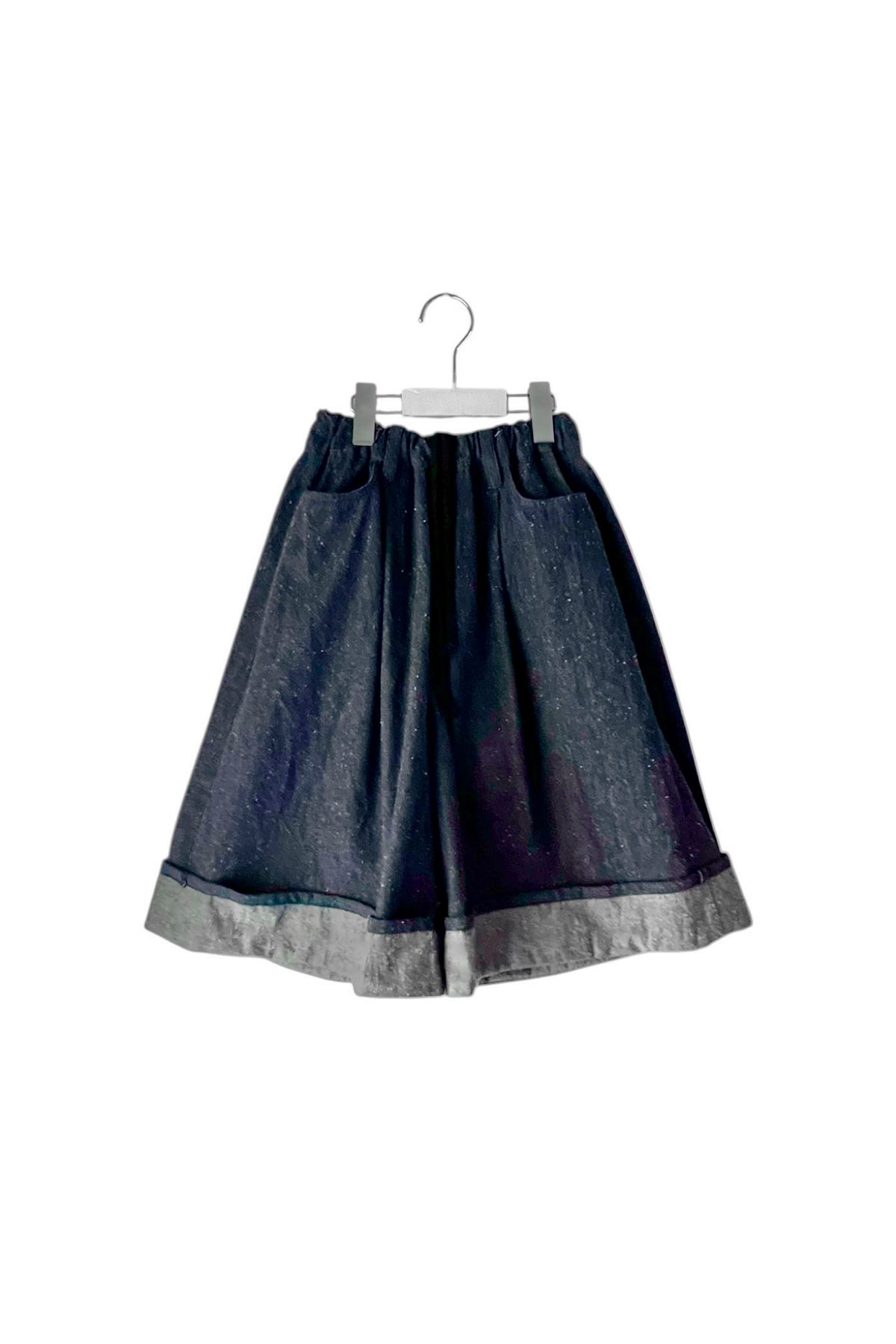 ポケットの形などデニムのデザインを取り入れたワイドシルエットなキュロット。
