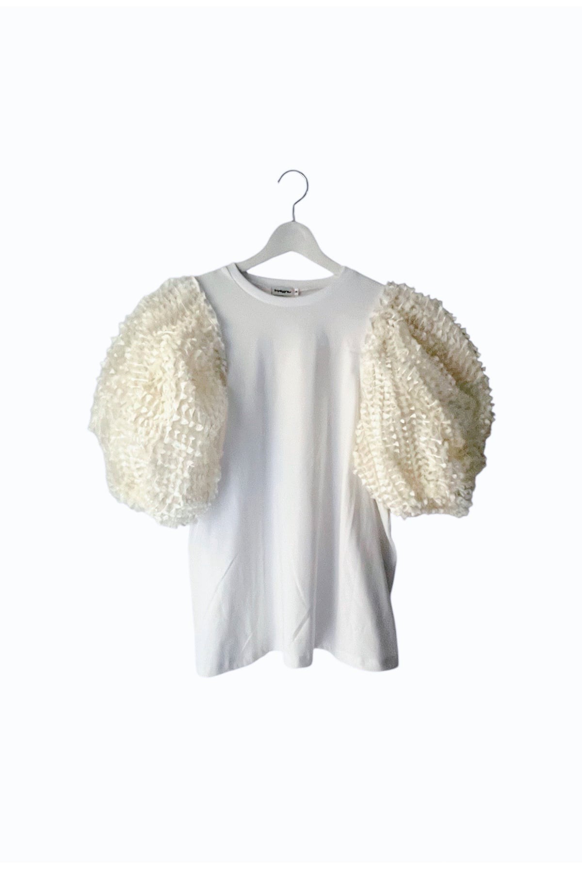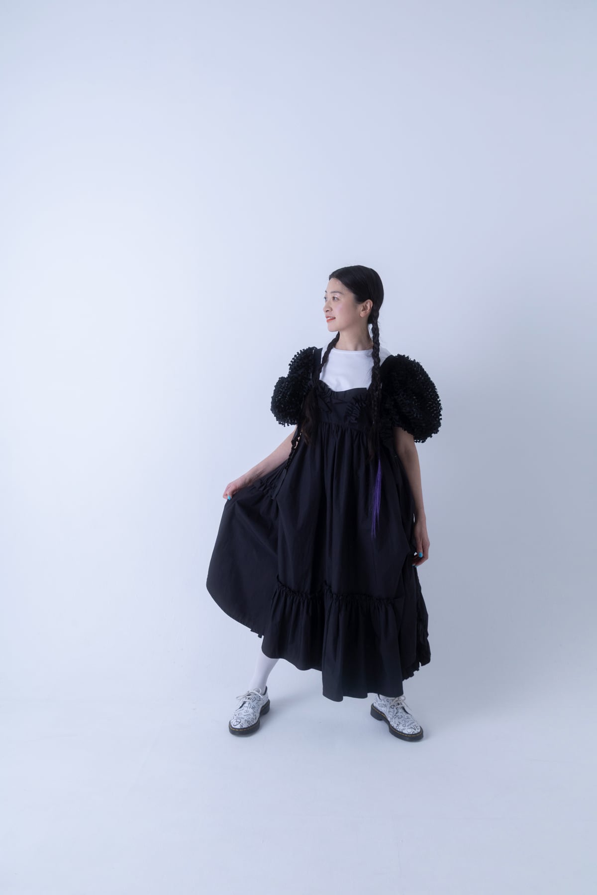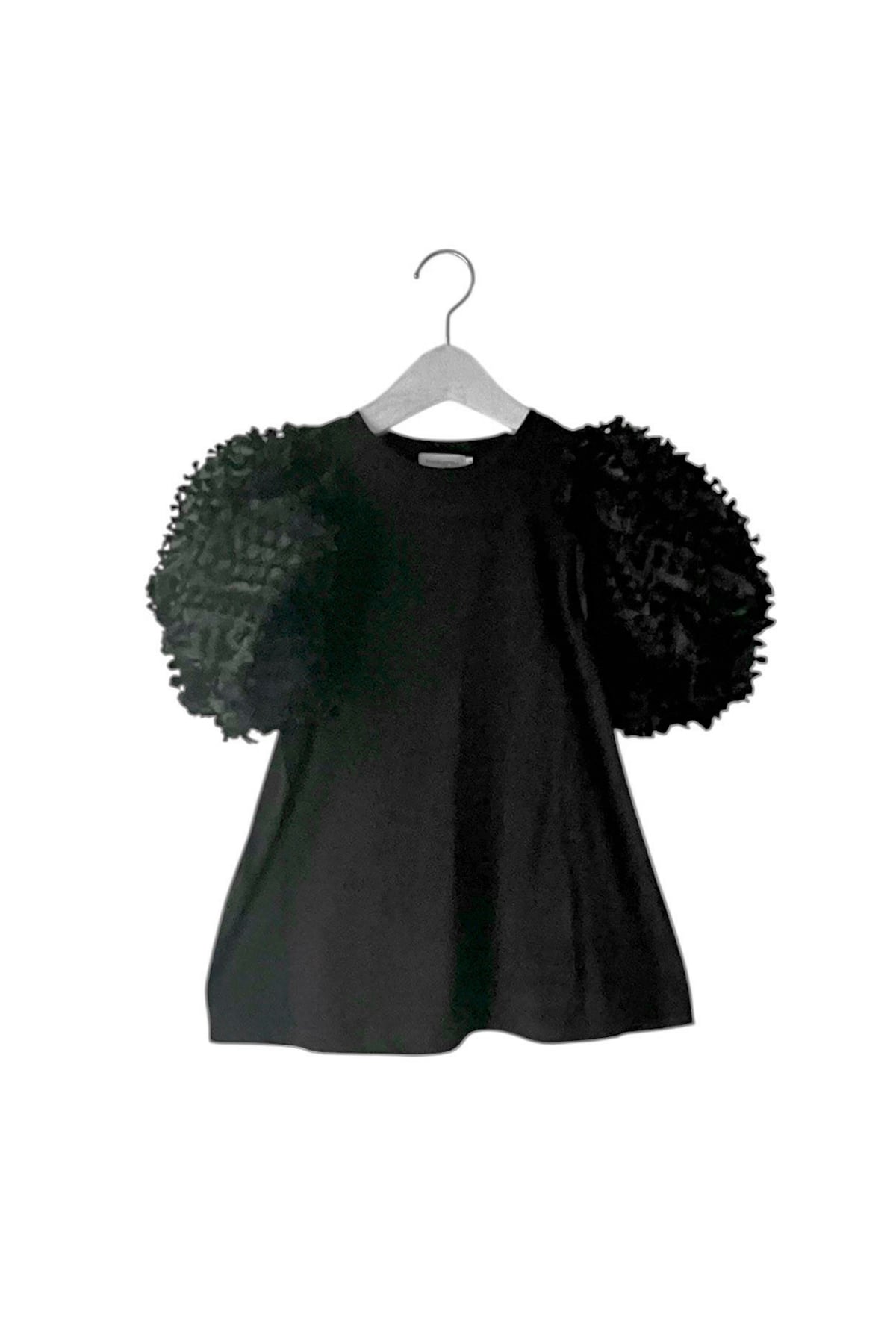 袖部分はリボンモチーフのオーガンジーテキスタイルを配置。