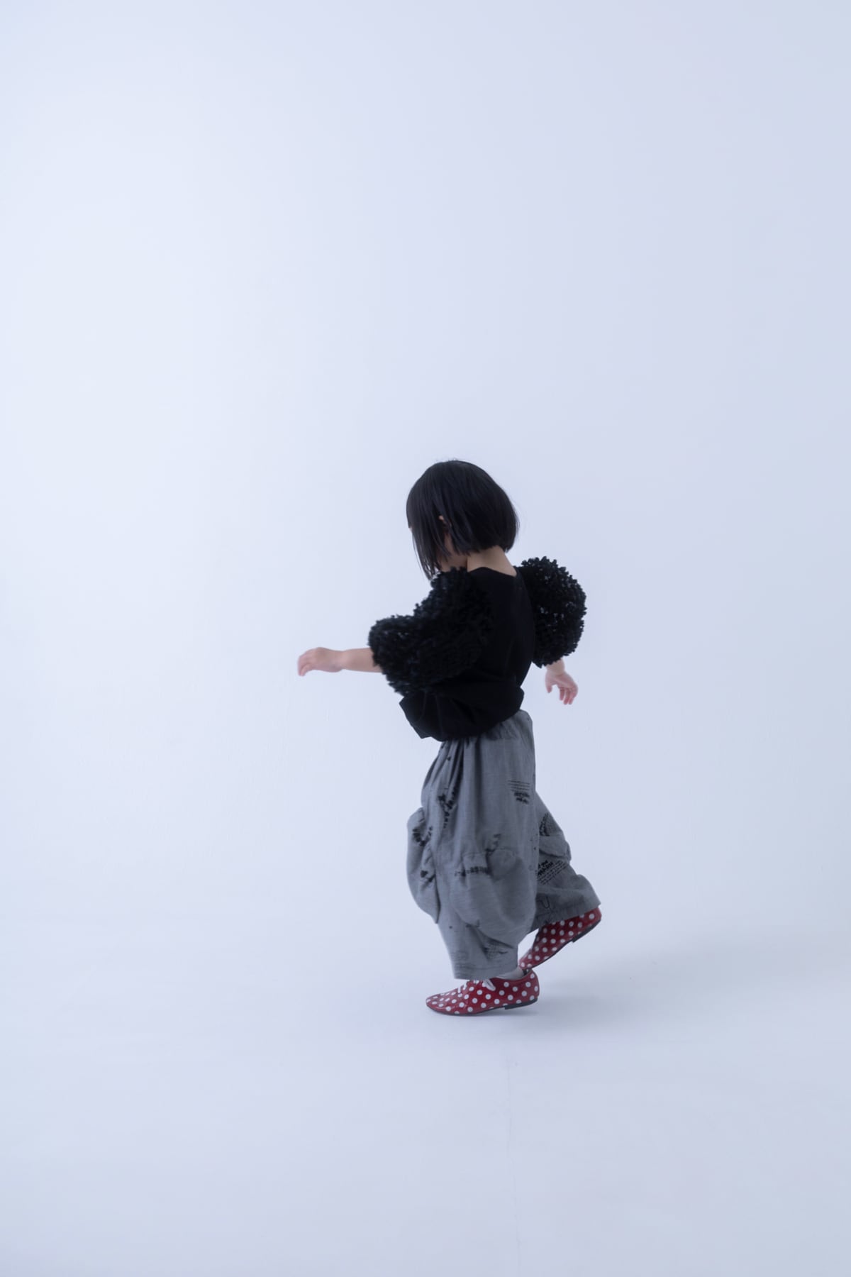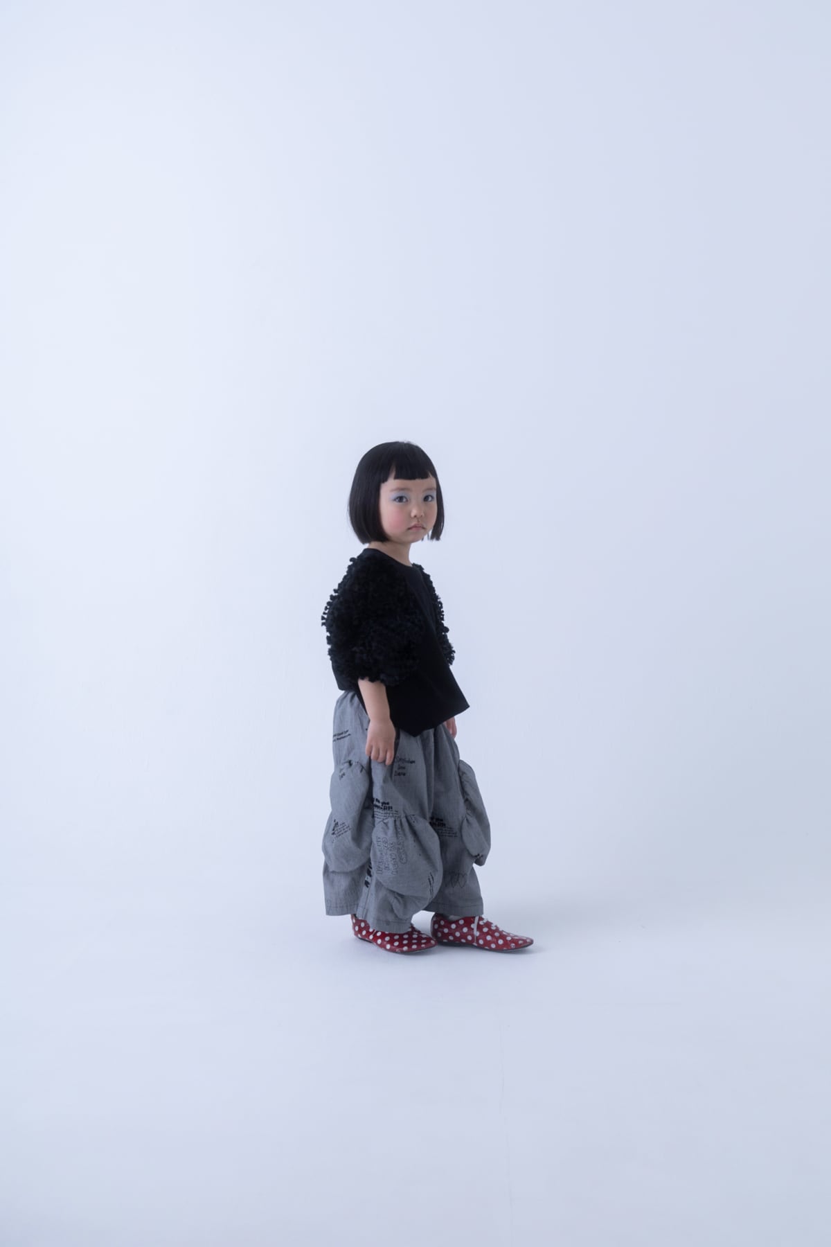 クマモチーフの切り替えがあり一枚でもコーディネートの主役になる一枚です。