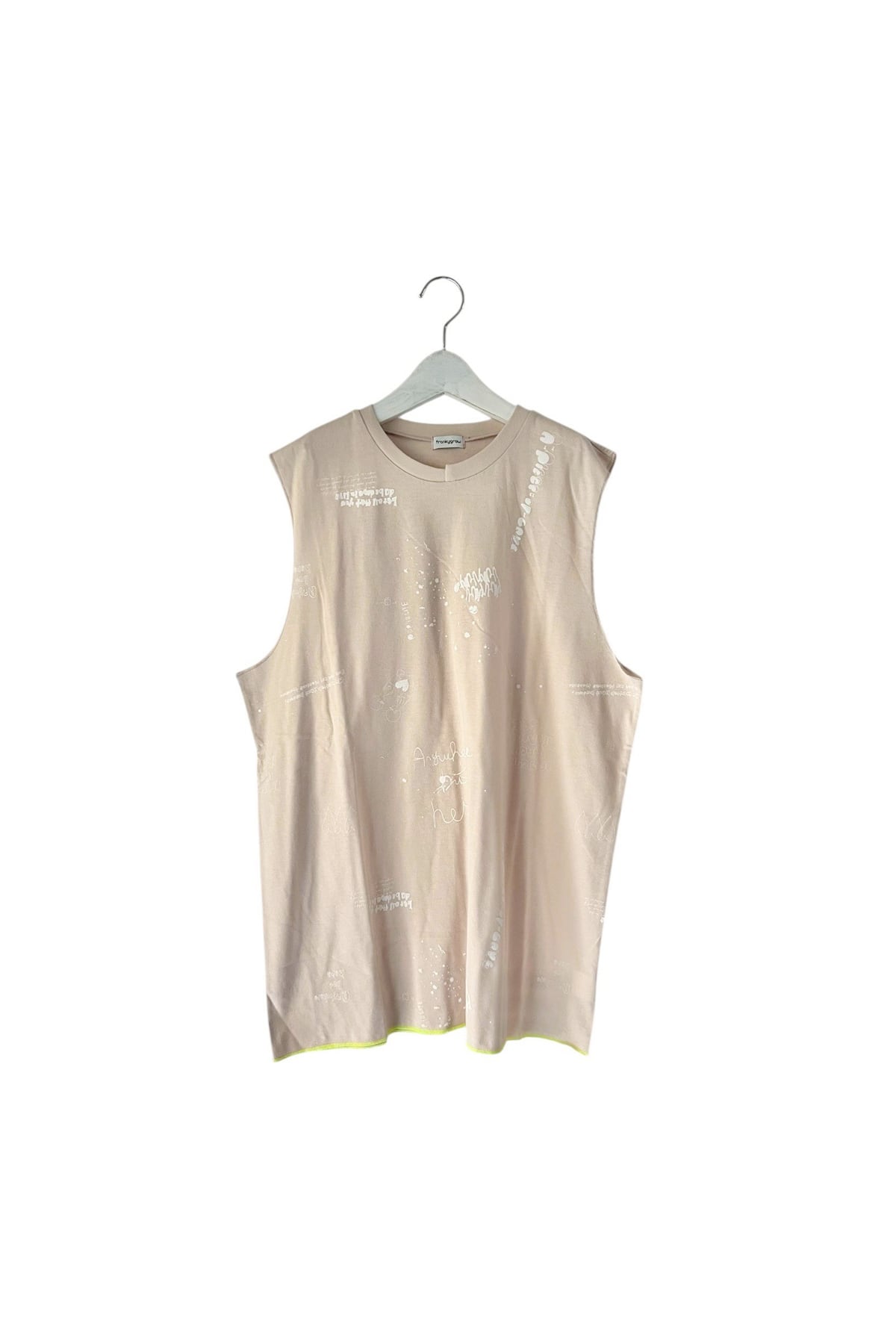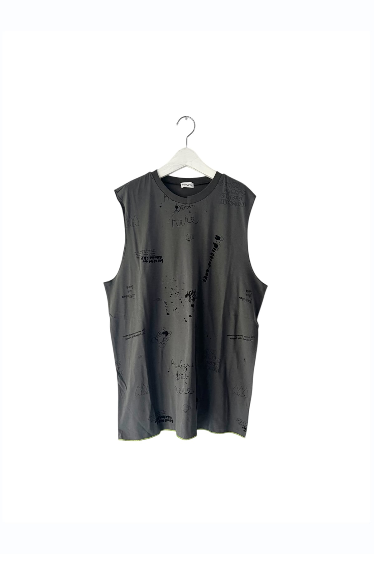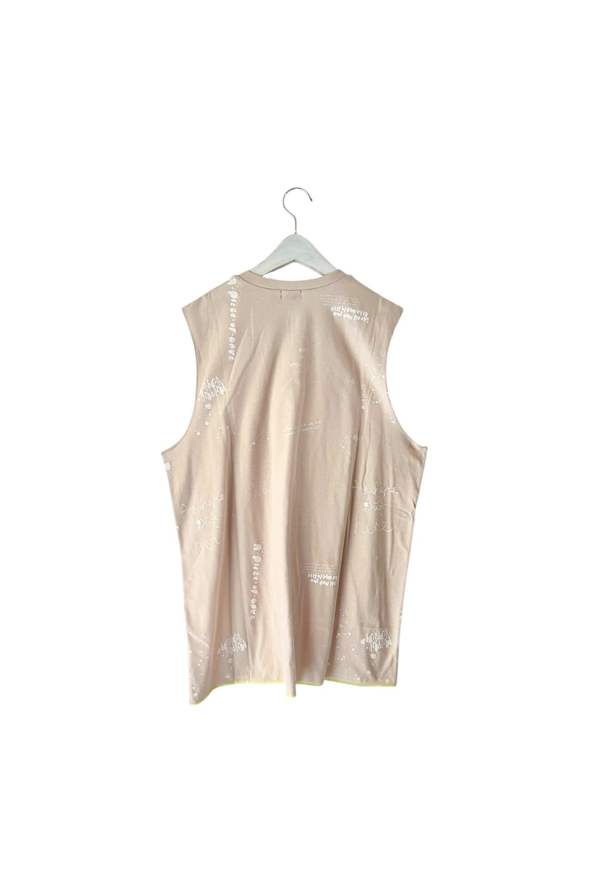 段差リブと大きく開いた袖、裾のステッチとデザインされたタンク。