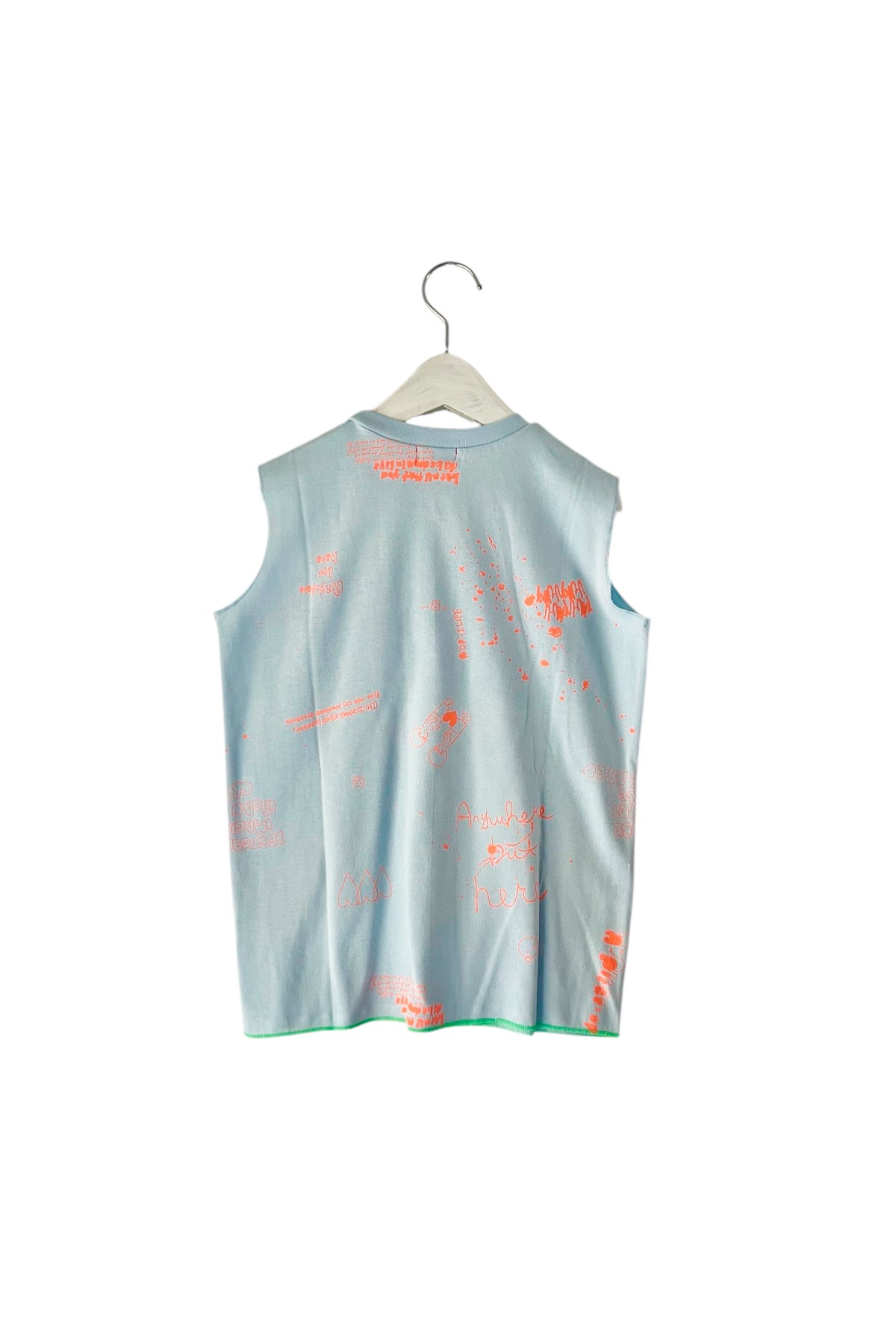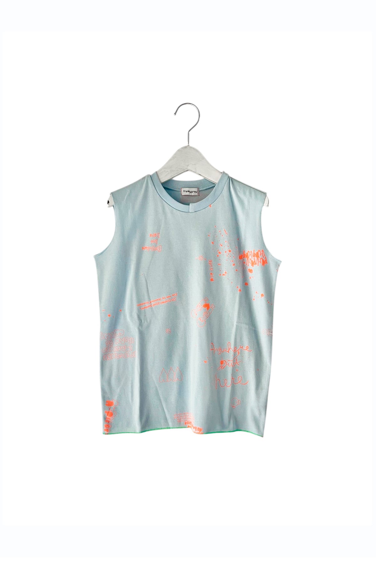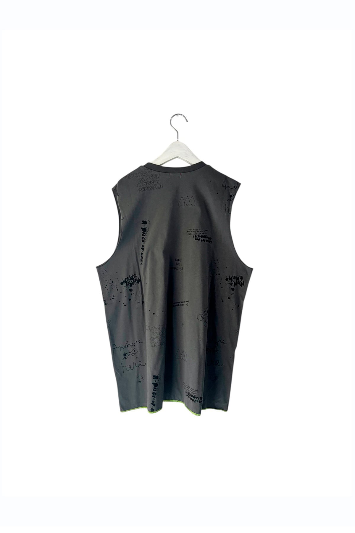 段差リブと大きく開いた袖、裾のステッチとデザインされたタンク。