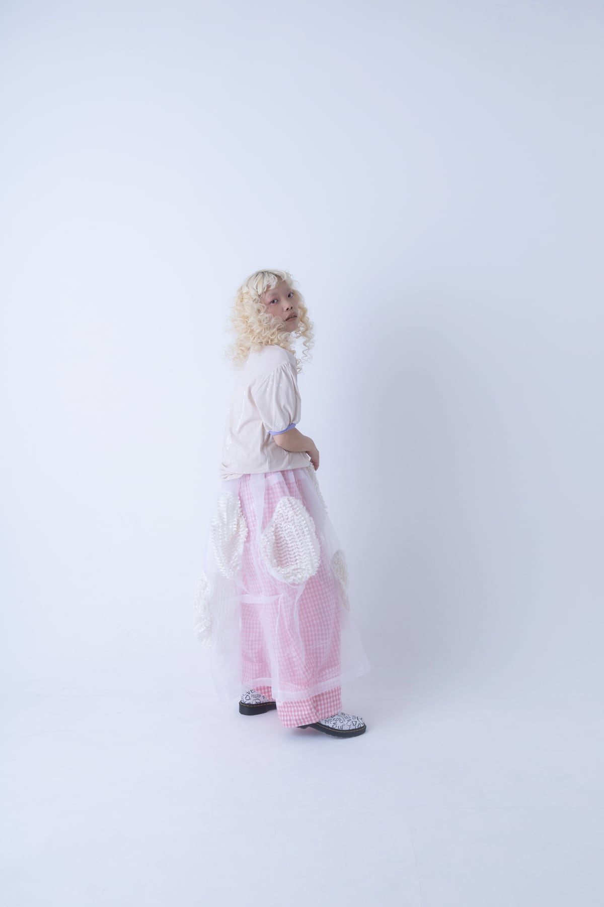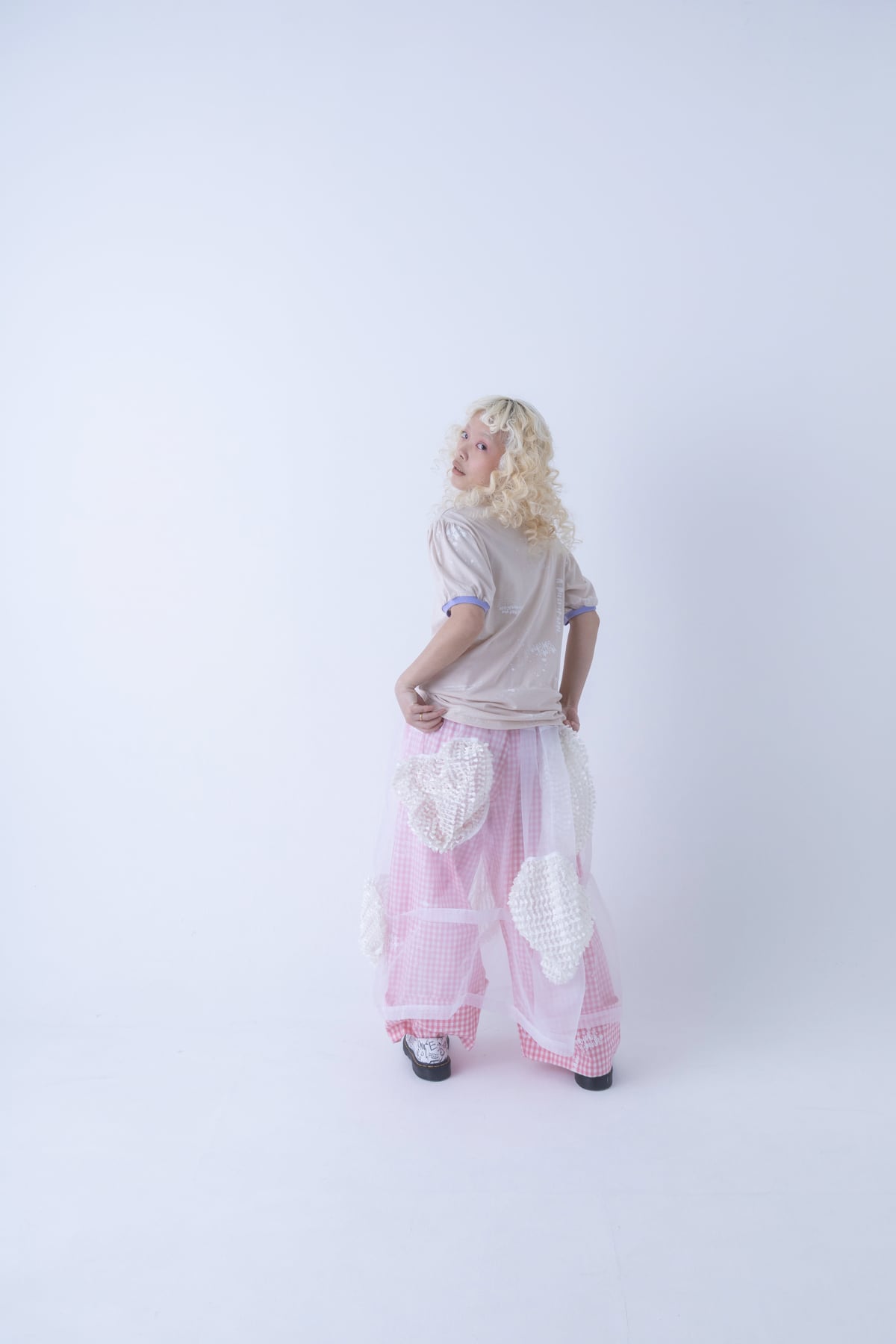 ○ model / Towa 132cm(col.PINK BEIGE-WHITE / size. L 着用)
