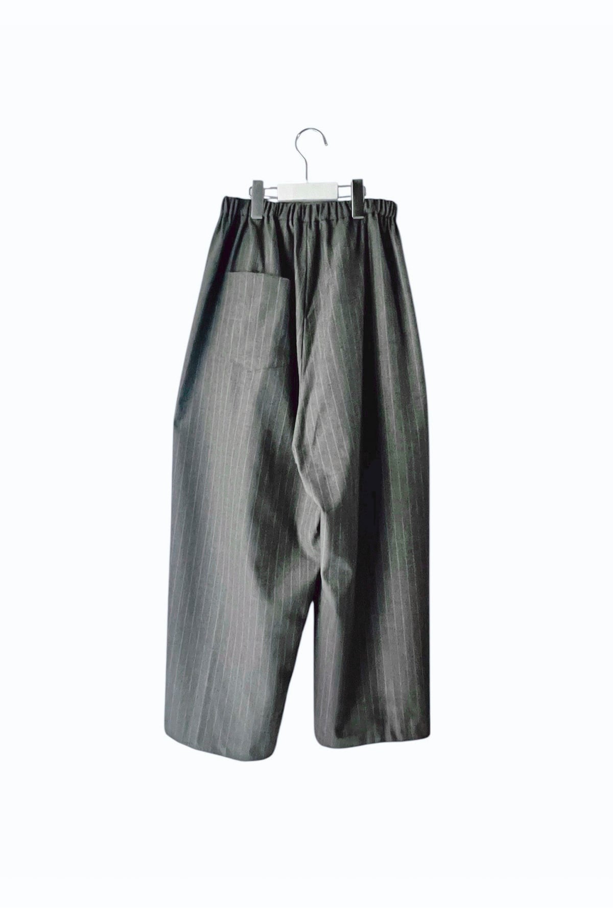 ピンストライプ柄とサイドラインが印象的なワイドシルエットなパンツ。